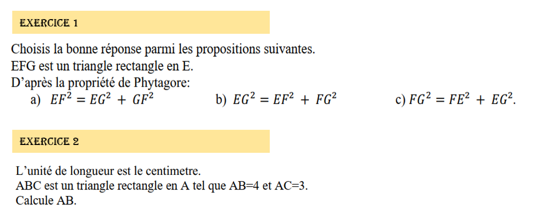 MATHS 3ième : FICHE 1 (TRIANGLE RECTANGLE)