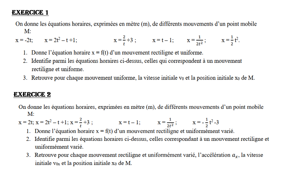 Fiche de travaux dirigés PHYSIQUE Tle D CINEMATIQUE DU POINT by Tehua