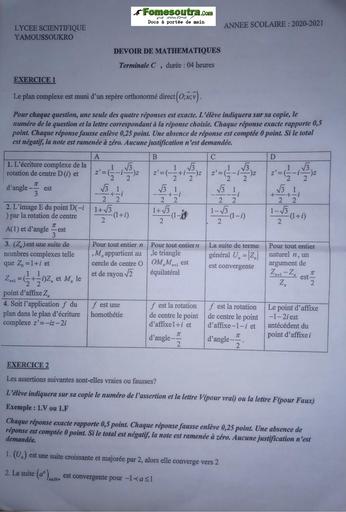 Devoir Histoire-Géographie Niveau Première Groupe Scolaire Sainte Foi 2020-2021